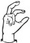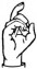 На ћирилици написано ПАУН БУРМАЗ састоји се из 10 слова [?]. Исписано ћириличном једноручном азбуком за глувонеме: